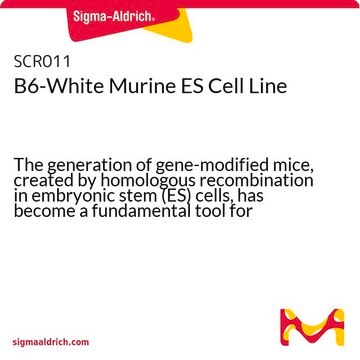 The generation of gene-modified mice, created by homologous recombination in embryonic stem (ES) cells, has become a fundamental tool for analyzing gene function. The influence of genetic background on phenotype has been shown to be an important consideration in selection of a mouse model. Furthermore, the time required to achieve congenic status, which can be 18-24 months has further stimulated demand for targeting in pure inbred strains including C57BL/6 (B6) mice. Millipore′s B6-White Murine ES cell line is the first commercially available C57BL/6 tyrc-2J albino line that allows for rapid coat-color determination of successful chimerism in the C57BL/6 mouse strain. When B6-White ES cells are injected into C57BL/6 blastocysts, chimeric mice are easily identified by their coat color (a mix of black and white patches), whilst non-chimeric littermates are black. These cells allow for the efficient generation of gene-targeted mice in a pure C57BL/6 genetic background, thus providing more experimental flexibility. Additionally the use of these cells can lower production costs by eliminating the need to maintain an albino blast donor colony, in order to assess chimerism by coat color when targeting in the C57BL/6 strain. For germline transmission confirmation by coat color, it is recommended that male chimeras are mated with homozygous females of the B6-white strain (strain name: C57BL/6J-Tyrc-2J/J - available from Jackson Labs, stock number 000058). STRAIN:C57BL/6-tyr(c-2J) albino mice GENDER: Male KARYOTYPE: 40XY